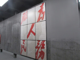 P141:「為人民服務」壁畫,畫中主角就是題字者--毛澤東。
