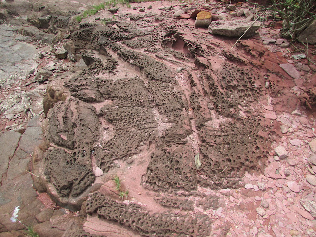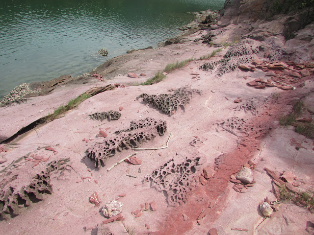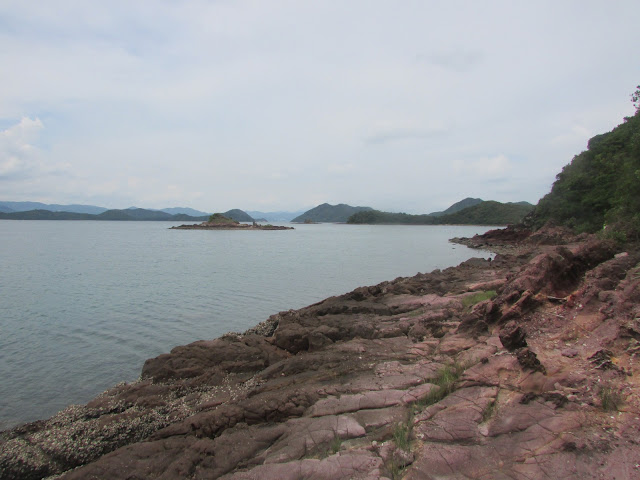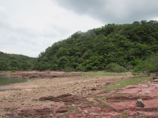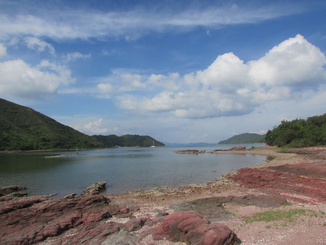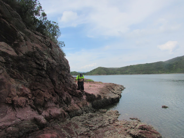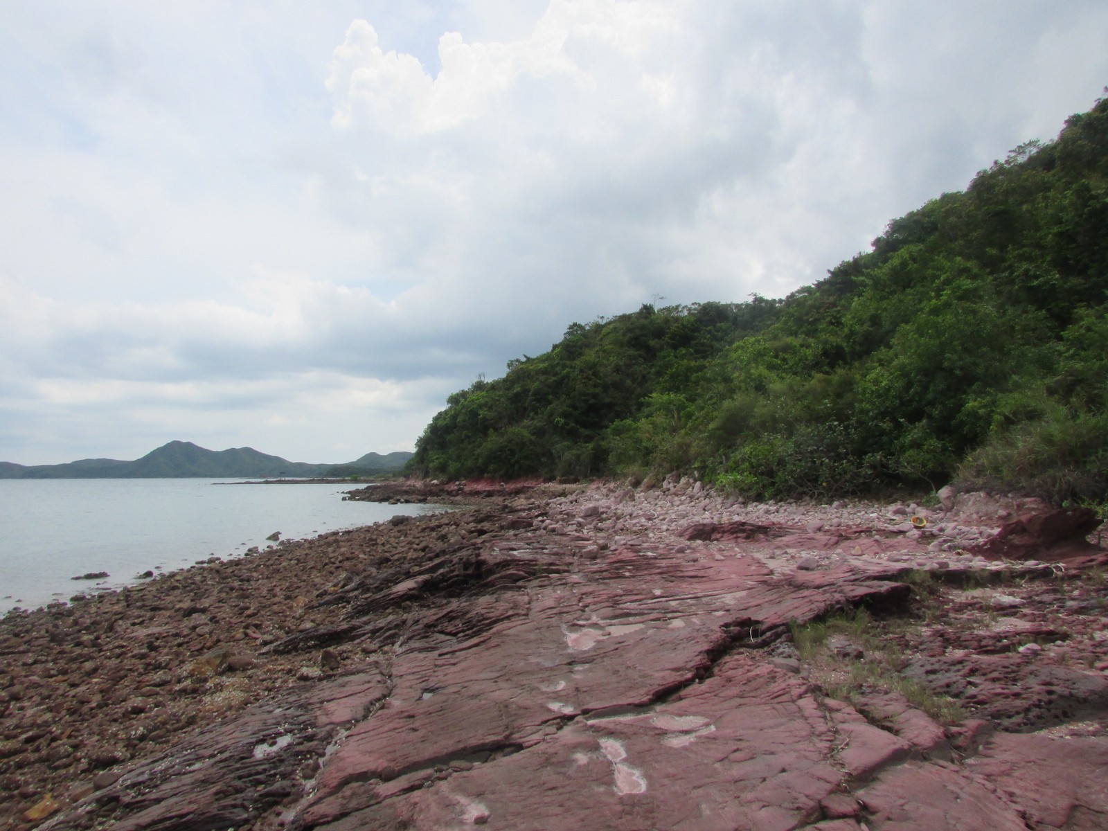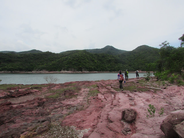 離開馬尿瀑海邊,沿海岸線東走,途經長排頭後繞入北海篤的深灣。篤盡處是一大片淤泥沼,非常吸腳。當腳從淤泥沼抽出時,因吸力太大,把鞋面與鞋底的一小部分「解體」,幸好還能頂住全程。因天氣很熱,大家沿途安排了多次休息。離紅石門越近,岸邊的岩層則變得越紅,但已沒大心情細賞風景,只好如機械人般一步步走著。