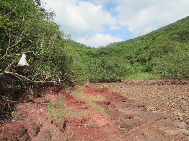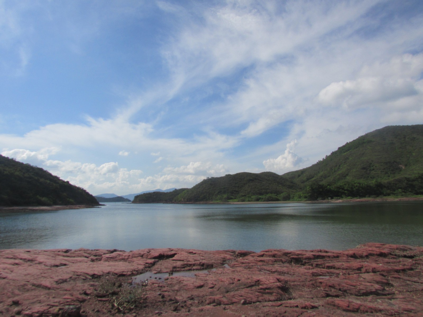 來到鹹魚埕,可見一些人工建設痕跡,據說以前更有車路往來紅石門。走著走著,下午三點多抵達紅石門村,大家急不及待的在樹蔭下大休,甚至席地而睡。有的則穿過堤壩,往盪排頭拍攝火紅海岸。藍天下的紅石門海岸,色澤特別紅,十分美麗。大家休息了一個半小時才起步,再途經那座荒廢鐵皮屋。兩個月前那廢屋二樓還有一邊牆身,但上月的連場暴雨,把僅餘的牆身也塌下,只遺下幾根樁柱。我們一步步的上走,經觀音峒、大峒、下苗田村,七點半返回烏蛟騰,結束刺激之旅。