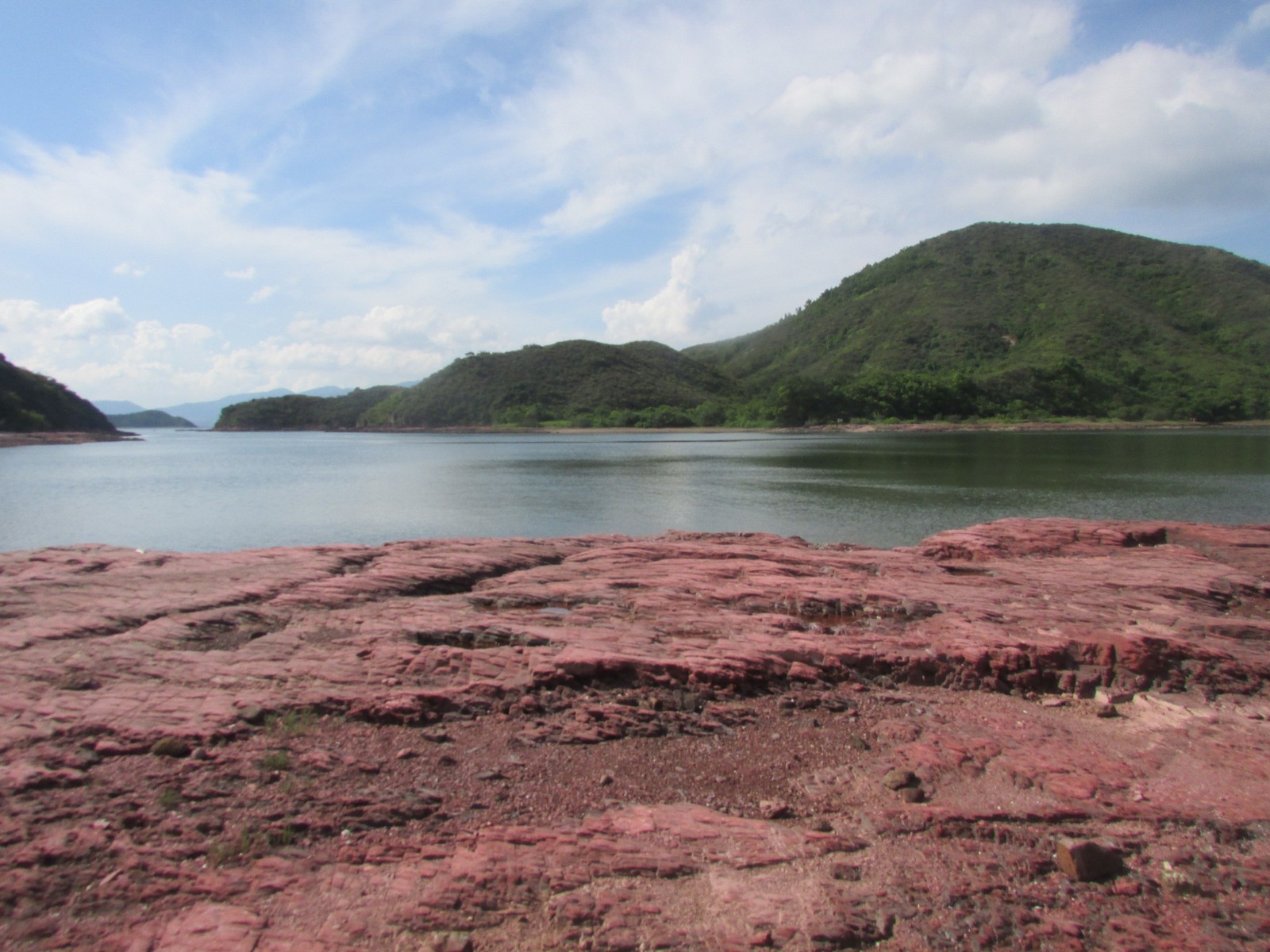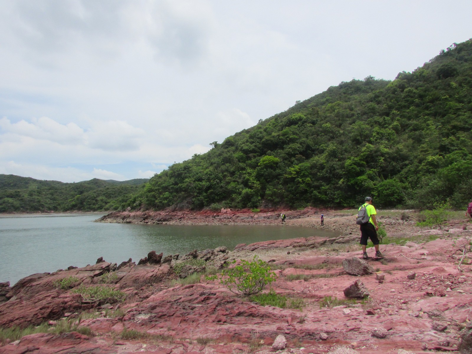 來到鹹魚埕,可見一些人工建設痕跡,據說以前更有車路往來紅石門。走著走著,下午三點多抵達紅石門村,大家急不及待的在樹蔭下大休,甚至席地而睡。有的則穿過堤壩,往盪排頭拍攝火紅海岸。藍天下的紅石門海岸,色澤特別紅,十分美麗。大家休息了一個半小時才起步,再途經那座荒廢鐵皮屋。兩個月前那廢屋二樓還有一邊牆身,但上月的連場暴雨,把僅餘的牆身也塌下,只遺下幾根樁柱。我們一步步的上走,經觀音峒、大峒、下苗田村,七點半返回烏蛟騰,結束刺激之旅。