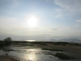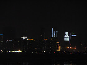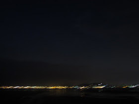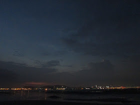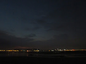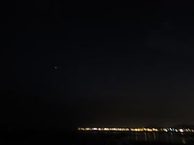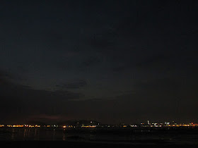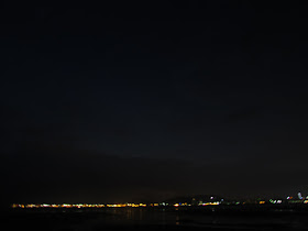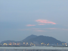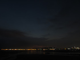 隨著天色轉暗,對岸的蛇口區及深圳灣大橋紛紛亮燈,更見遠處的某座高樓間中發射綠色的激光束,每次持續約十五秒。最後沿馬路回村公所的總站,碰巧小巴還有最後一個空位,毫不猶疑的上車,返回天水圍站。中途經「鴨仔坑」的另一處觀日落熱點,路邊還有幾十人都未能上車,相信他們也很無奈呢!