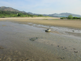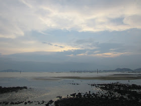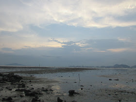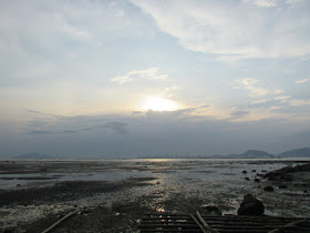雖然沒有看到日落,但也有走到下白泥的天涯海角,那裡與屯門稔灣堆填區只是一河之隔,沿海邊走,也需穿越一段泥灘及長約三百米的亂石堤圍才到達,總算是另一個收獲了!
