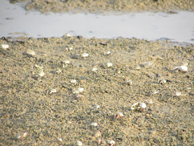 P34-38:這裡蟹類很多,外形呈白色,只能用高倍變焦才攝到,一走近牠們,全鑽入洞內。