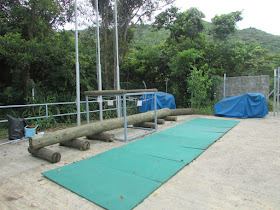 從荃灣站出發,沿「大路」經半山村寮屋區、下花山村上元荃古道,途中加遊航空青年團下花山訓練營,去年才落成,位處有點隱蔽,路上的標示也很多,並不容易找到,似乎學員多從下面的西竺林禪寺一帶上訓練營吧(下花山村面積其實很大的)。營裡的工作人員十分友善,讓坳仔參觀之餘,更奉上一份宣傳單張,那裡共有兩層,其中二樓是活動室、露營地點及歷奇設施。在此停留幾分鐘,就回到元荃古道。或因天氣炎熱的關係,遊人不多,另外可見一些工人在翻新路旁的涼亭。