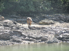 坳仔已多次往來牛屎湖村,牛屎湖村剛好荒廢半個世紀(1965年因街渡翻沉意外,部分村民罹難,自此村民受怪事影響,村民六月底開始棄村他遷)。因已屆雨季的關係,小徑旁的雜草變得頗為茂密,且有約廿多個大蜘蛛網(集中在近牛屎湖村一段),但蜘蛛網較為明顯,有的更高於頭部高度,只要慢慢的走,便不太容易碰上它。有別於春季的蜘蛛網,縱使網的面積較少,不過較難看見,加上數量較多,不管你走得多麼小心,也不容易完全避開它。抵達在牛屎湖村,那裡深藏林中,故先在那裡坐下休息一下。然而,夏天蚊子較多,坐下一會後,蚊子就蜂擁而至,故不作久留,沿樓梯下走海邊,再經岩石海岸再起步往西流江。途中再多一個位置被塌樹所阻,幸好旁邊有道小徑繞過,順利抵達海邊。岸邊真的有一些黃牛在活動,都是第一次看到牛群在牛屎湖出沒,原來牛屎湖真的有牛屎呢。