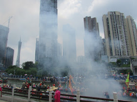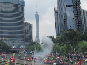 P79-81:正燃放鞭炮的龍舟隊,來自天河棠下新墟村。