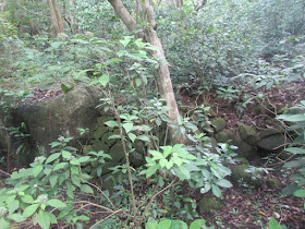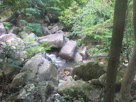 從城門水塘出發,穿過賞蝶園,連綿不斷的樓梯為遊人帶上龍門郊遊徑近最高點,那裡有道支路,左拐可沿大帽山南麓山腰徑直達川龍,乃郊遊徑的主要部分。在此不左拐,繼續上山,乃禾秧山的東麓山腰徑,那裡有無盡的小溪,它們都是大城石澗的支源。就在小溪、小徑間穿插了半小時,就到大城石澗中游--肥佬麥,多年前某行友在那裡的大石上,刻了「肥佬麥」三字,故後人稱之「肥佬麥」。然而,坳仔在香城中央圖書館翻閱近一世紀前的地圖(1914及1924年),發現「肥佬麥」附近有座古村落,名叫「南房肚」,屬「城門八村」之一(八村因興建水塘的關係,全已遷走),有古道連接至水塘附近,乃現在的「虎蹤徑」。是日所見,「肥佬麥」附近仍有為數不少田基遺跡,而屋子因荒廢多時,相信已全數倒塌。