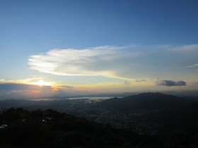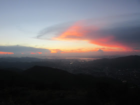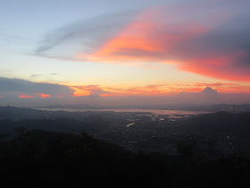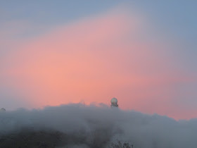忽然紅霞射在大帽山頂,配合附近的薄雲,雷達站有如發生火警。