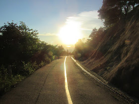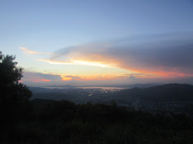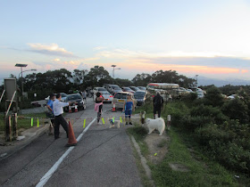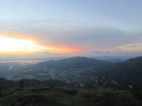 遊覽過禾秧石林後,沿水泥小徑下降至林內,小徑盡頭就是「西南坑」的源頭,那裡有座蓄水池及小屋。原路折返,再走十餘分鐘,接入麥徑八段M149至M150之間。全走麥徑共一百公里的「毅行者」比賽將在三個月後舉行,故有不少人趁周末操練,以求在比賽中有個好成績。循馬路緩緩下山,正值日落時份,有些遊人在馬路沿途留影,而閘口旁的停車場停滿了車,有點意想不到,還以為星期六遊人沒有那麼多呢。續走麥徑八段的山路,途經一座小山崗,欣賞落日餘暉,碰巧紅霞射在雷達站上,配合山頂上的薄霧,看似正發生火警,可謂嘖嘖稱奇。賞過餘暉,沿樓級不斷的下降,最後抵達荃錦坳巴士站,結束半天之旅。