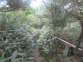 抵達相思林徑的十字路口,這裡有兩個倒下的路牌,在此不左拐或右拐,續上。