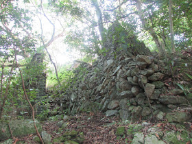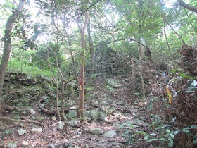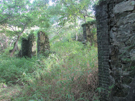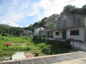 橫山腳下村的一排廢屋與小石堤。
