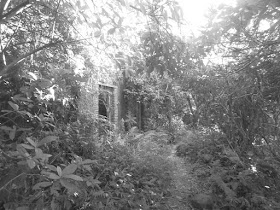 破落的屋宅,被野草樹藤纏繞著。