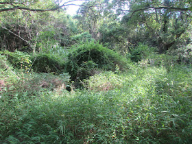 荒廢良久的上七木橋村,雖然屋舍輪廓及佈局仍可辨認,但裡面已長滿雜草。
