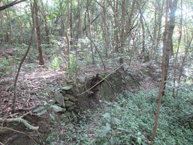 穿過橫山腳、七木橋的廣闊廢田後,就見一道十字路口,直走就引入橫山腳村腹的樹林(另兩路下新娘潭及上黃嶺),原村民都已遷往沙頭角公路馬尾下附近。先經橫山腳上村,那裡的原居民姓陳,有最少兩排村屋,其中下排的廢屋,面積奇大。經過破落的關帝廟,就進入橫山腳下村,同樣是荒廢良久,屋宅嚴重崩塌,現變野豬的出沒熱點,而坳仔經過的時間就與去年在村裡遇見野豬群的那次幾近一樣(都是在八月初的下午五點多)--但是日沒有遇到。