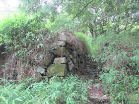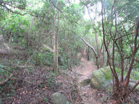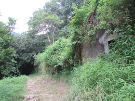 途中有一支路,左上草山;右路深入林中,可通小山崗或石榴洞村遺址。