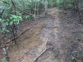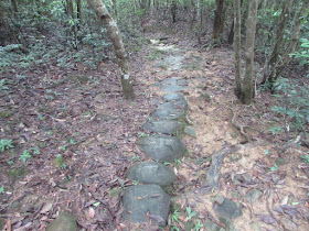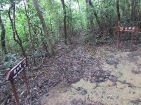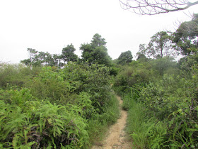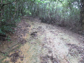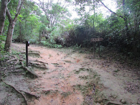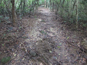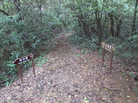 由水浪窩出發,沿麥徑三段上山,遊人不多,僅有兩三組疑在操練毅行者的人,他們四人一起。在M066附近繞入旁邊的小徑,依山脊線及明顯山徑緩緩下走,並在樹林間穿梭,半小時後就到黃毛應村。