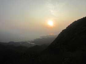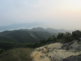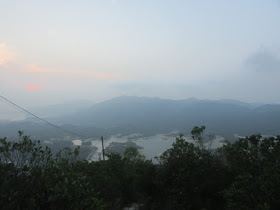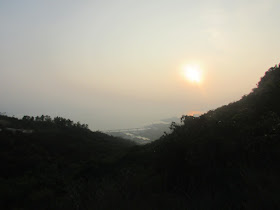 適逢日落時間,在此可賞近乎無障礙的日落景觀,不過為免迷途,在那裡只攝了幾張相後就要趕往主峰,主峰上有座三角網測站。因那裡正處飛機航道之下,故民航處也在網測站以西約一百米建了個障礙物燈標,以作提醒。穿過燈標後,就沿長長樓梯,急降至大欖涌水塘附近的馬路,然後就經懲教所馬路,出大欖涌村口,並乘巴士回市區作結。