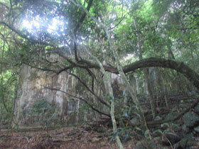 下走至海邊,路旁有一根繞成C字形的粗藤: