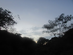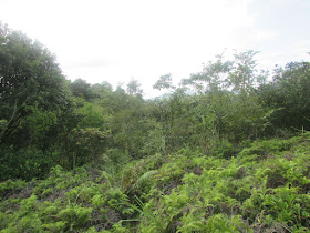早茶後乘小巴往鹿頸,沿沉悶的海邊紅樹林步道往谷埔。在沒有人類干擾的一天,牛群都在荒田裡悠閒的覓食,白鷺也光臨田野中,與比自身大得多的物種一起和平共處。事實上,不少郊遊地方及遠足徑本屬大自然,人類才是外來物種。穿過村腹,沿荔谷古道上分水坳,在分水坳遇上一群玩爬山單車的遊人。在此轉入指示牌沒有指示的路,在小徑穿插上走一會,就到個小山崗,那是往尖光峒與老虎石頂的分支,仍是遍地垃圾,有的已「融入」大自然中,亦有一些較新的垃圾,真的不明白為何遊人愛在那裡亂棄垃圾,似乎是「破窗理論」的一個好教材。