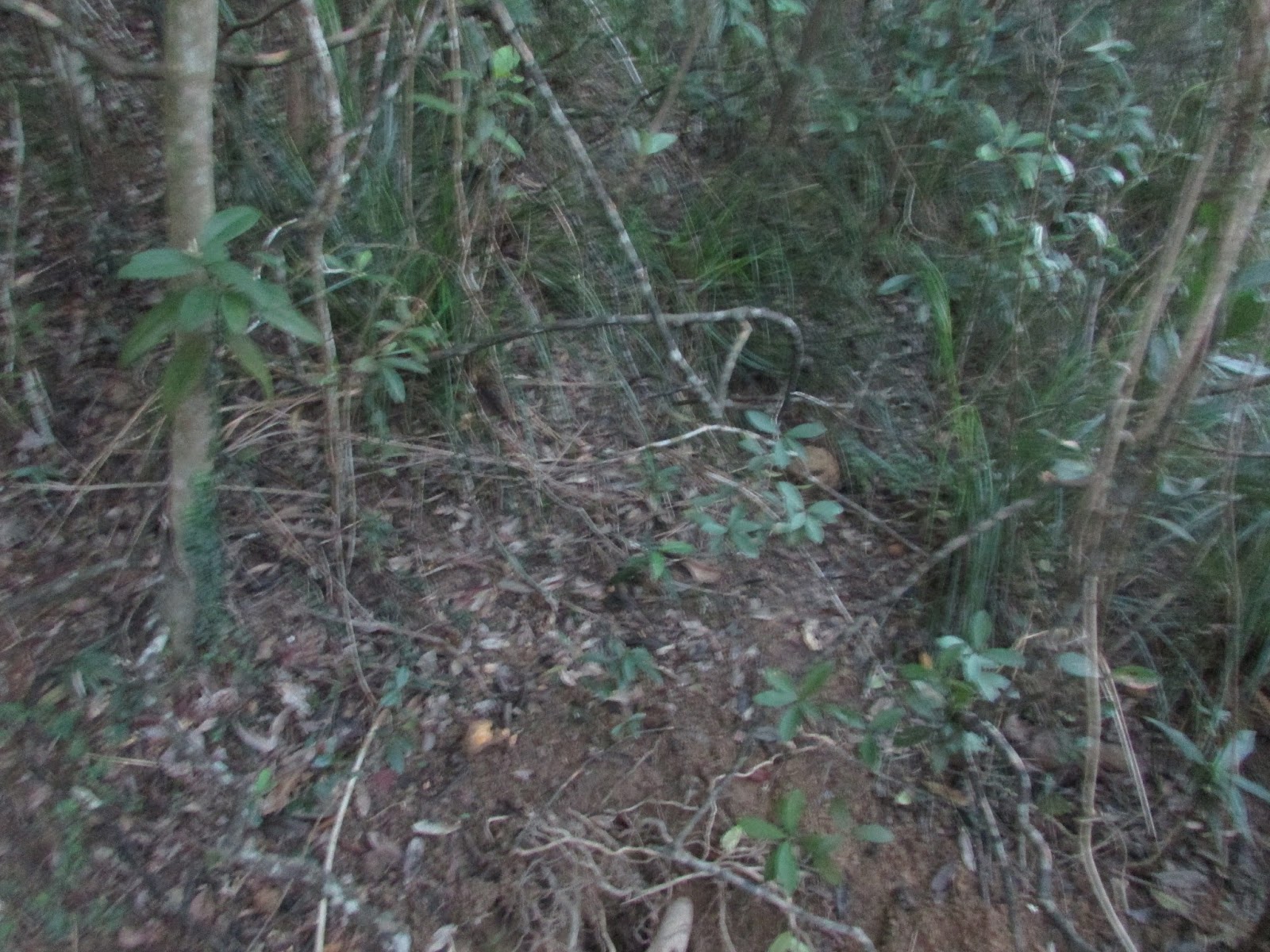 再前行幾分鐘到馬路盡頭。前走幾分鐘,見一隱蔽樓梯,乃上「野豬頭」的小徑。穿過山頭的三角網測站,沿崎嶇小徑南下港島徑六段,初段野草頗長,亂石頗多,路胚不太明顯,也幾次差點摔倒;後段引入密林中,裡面滿佈粗藤,亦途經疑似旱澗,路況同樣非常崎嶇凌亂,幸好在入黑前及時接回港島徑六段,然後東走幾分鐘到馬路,再經大潭篤村往大潭篤水塘巴士站作結。由於赤柱遊人很多,加上途經那裡的巴士班次較為疏落,故等了一小時,才能上巴士回西灣河站。