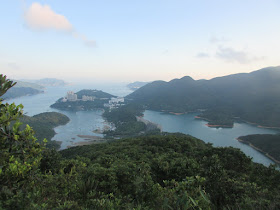 再前行幾分鐘到馬路盡頭。前走幾分鐘,見一隱蔽樓梯,乃上「野豬頭」的小徑。穿過山頭的三角網測站,沿崎嶇小徑南下港島徑六段,初段野草頗長,亂石頗多,路胚不太明顯,也幾次差點摔倒;後段引入密林中,裡面滿佈粗藤,亦途經疑似旱澗,路況同樣非常崎嶇凌亂,幸好在入黑前及時接回港島徑六段,然後東走幾分鐘到馬路,再經大潭篤村往大潭篤水塘巴士站作結。由於赤柱遊人很多,加上途經那裡的巴士班次較為疏落,故等了一小時,才能上巴士回西灣河站。