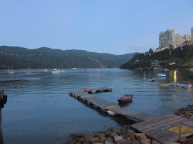 黃昏的大潭港,旁邊的高樓群就是紅山半島: