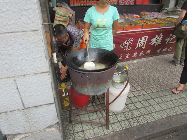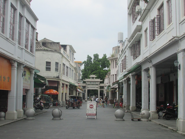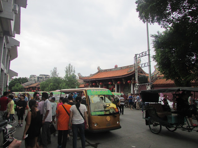 很不幸,家人此時開始水土不服,就在此後的大半天腹瀉了十次,連午餐也無胃口,大為影響旅程興致。我們點了白切雞、鐵板鵝肉及皮蛋莧菜煲,飯後就往旁邊的特產店購物,包括花生糖等。因花生糖已售罄,要等十五分鐘左右,坳仔趁有少量空檔時間,快速的遊覽其中一邊的「牌坊街」,全長近兩公里,共有牌坊廿二座,由明清代間開始修建,有的正背面內容並不同。我們三人隨即就略逛古城一下,只是沿開元路再前走一會,似乎已不在古城的範圍,故到開元寺休息,真正的開元寺就在那裡。開元寺建於唐代,已有近一千四百年歷史,呈現一貫的古代朝廷格局。