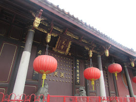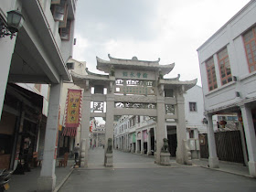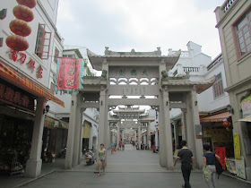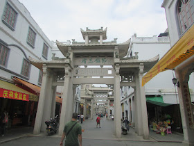 很不幸,家人此時開始水土不服,就在此後的大半天腹瀉了十次,連午餐也無胃口,大為影響旅程興致。我們點了白切雞、鐵板鵝肉及皮蛋莧菜煲,飯後就往旁邊的特產店購物,包括花生糖等。因花生糖已售罄,要等十五分鐘左右,坳仔趁有少量空檔時間,快速的遊覽其中一邊的「牌坊街」,全長近兩公里,共有牌坊廿二座,由明清代間開始修建,有的正背面內容並不同。我們三人隨即就略逛古城一下,只是沿開元路再前走一會,似乎已不在古城的範圍,故到開元寺休息,真正的開元寺就在那裡。開元寺建於唐代,已有近一千四百年歷史,呈現一貫的古代朝廷格局。