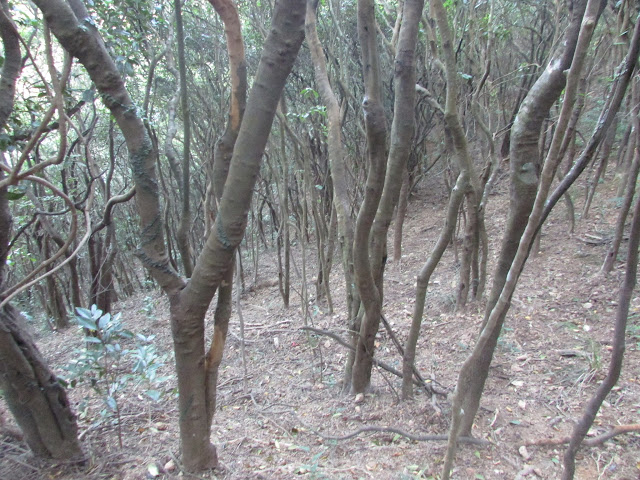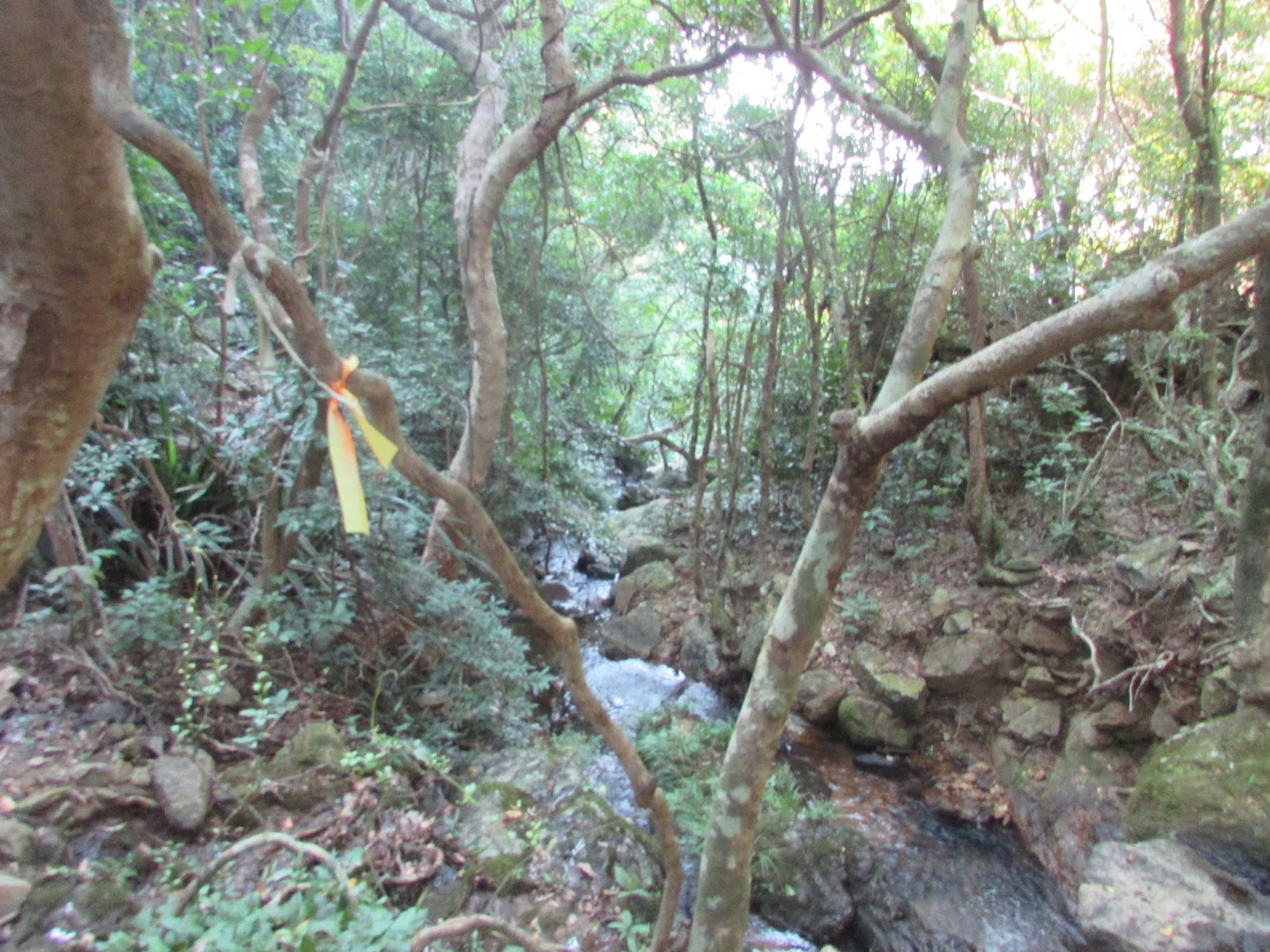 其實在五分鐘前,及接近新桂田左坑沼澤期間,也聽到有動物在林裡迅速逃跑的聲音。在更早的時間,經過瞭望亭接入橫山徑時,林中亦傳來赤麂的叫聲。似乎紅花嶺以北的叢林裡,絕對是野生動物的樂園吧!回想起三年前的閏日,正值沙頭角解禁後不久,因山頂大霧,結果迷路,臨入黑還被困在新桂田一帶,最後要摸黑出沙頭角,當日經歷真是恐怖,幸好印象中並無近距離遇上野獸!