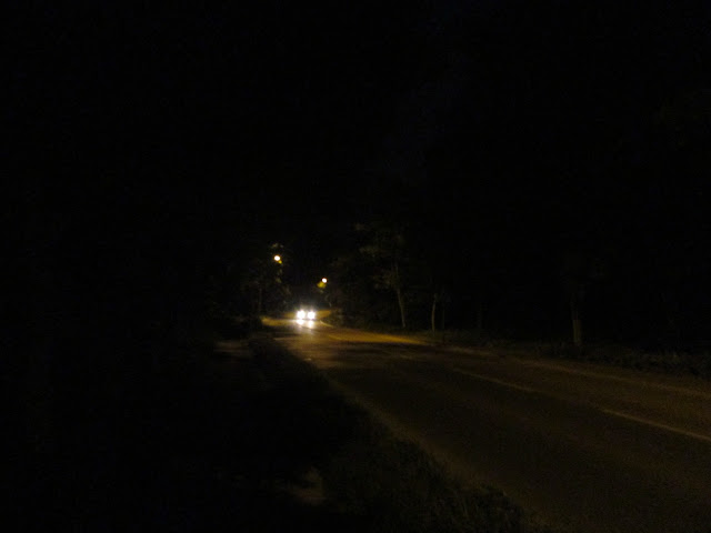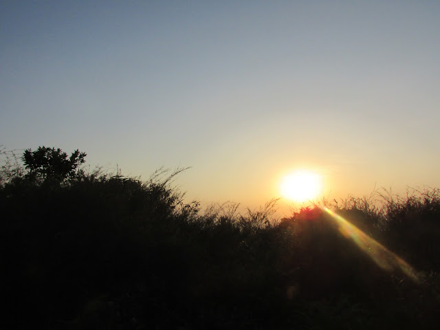適逢日落時份,夕陽掛在黃茅坑山之上,十分美麗。攝過夕陽後,就沿北脊上紅花嶺。紅花嶺一帶確是有趣,正常的都是較低處的林木較多,但那裡近頂處卻仍是叢林地帶,較低處反而有一些開揚位置,且那裡的樹椏都是彎彎曲曲的。中後段走進林中,時近入黑,林內開始昏暗,就在近頂處的鐵閘附近,忽然聽到近處右方傳來豬嚎,樹叢亦有明顯搖動,但因現場環境頗暗,故未能看清楚那是甚麼東西,林內的豬嚎持續至離開叢林為止。