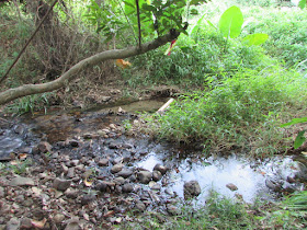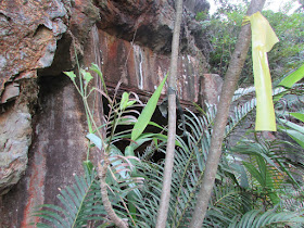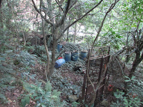 新桂田一帶相信是昔日礦工的居所,在右坑及礦坡底附近,約有三座較為完整的廢屋,其中一座更是疑被刻意炸毀。近五點才到達礦坡底,沿樓梯上百餘米到六號洞,途中經過一處荒廢的澗道,還有弱弱的水流,慎防滑腳。略探礦洞外圍,發現洞口位置仍在滴水。月初的「彩虹」,實在為大地帶來充沛的雨水,使沿途的山水,在這兩星期裡繼續充盈流著。