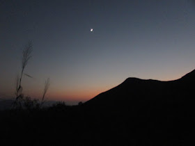 到達紅花嶺時剛好六點,金黃的晚霞照在西面的天空上。沿軍車路下山,此時正值Magic Hour,餘暉之上是一弧彎月,景觀極佳,真是一幅屬大自然的滿分圖畫。半小時後天色全黑,亦同時回到禾徑山路,就沿行人路南走十多分鐘,抵達沙頭角公路磚窰巴士站作結。