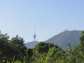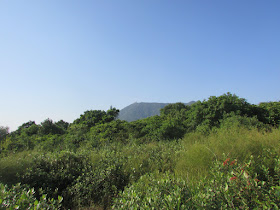 在山咀村路的高點上山,先經一座機鎗堡,然後直上亞公頂的荒廢英軍瞭望亭。上山初段景觀間中仍為開揚,但中後段轉入密林,且斜度增加;越近瞭望亭,斜度越高,上走時十分吃力,如在盛夏時候挑戰該段,相信會很易中暑。因起步時間太遲,是日本來想試由紅花寨北脊直落新桂田(蓮麻坑礦洞東北的小廢村),也要延至翌日(周日)才成行,是日到瞭望亭後,改走紅花寨及亞公頂以北的崎嶇橫山徑,這橫山徑年內走過兩次,雖然路況很亂,但仍有一定印象,一小時後到達新桂田的礦場底部。途經新桂田左坑下游的沼澤地,那裡有座「左昭右穆」大墳,但由於夏季剛過,野草仍是很高很密,故未能找著,田上還是帶著淤泥,只能按不明顯的路胚,細心前進。