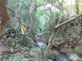 其中一支路可上440山頭,故不少人在此放了引路帶,提醒遊人往新桂田的方向:
