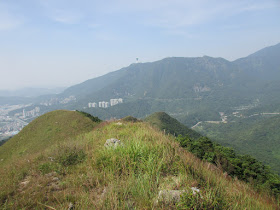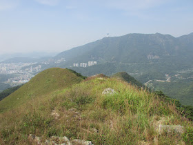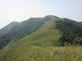 由440山頭而下的小徑非常斜,急降過後就是往紅花寨的山脊,視野頓時變得相當開揚,可盡賞沙頭角海一帶及沿岸美景。脊上有道明顯的植被分界線,草在南麓,林在北麓,事實上在八仙嶺、大帽山、大東山、雞公嶺都有類似景象,未知地理或生物學高手能否解釋到此景象呢。