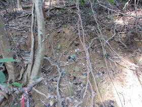 過第二道小澗前先急降一段,這裡有很多樹藤,也有野豬挖食樹根的痕跡: