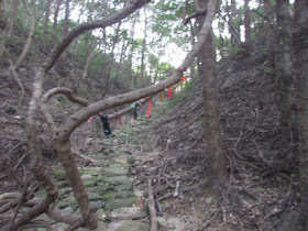 右坑畔的斜壁,需扶著路旁的石頭才不致滑倒: