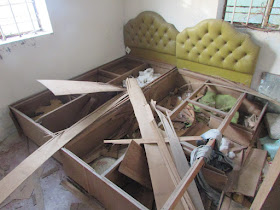 破爛的床與嬰兒車: