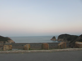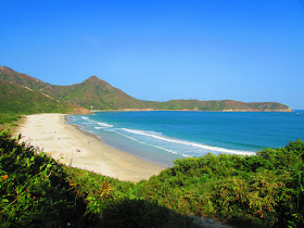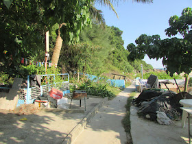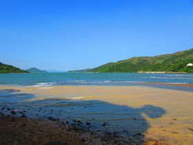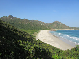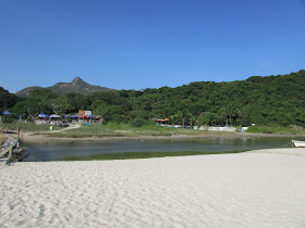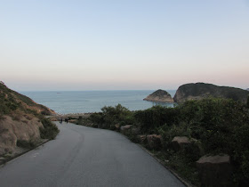 沿亂石路及樓梯下走至浪茄村,全村已變成戒毒中心,而前方的沙灘則是露營熱點。真是奇怪,灘上仍有為數不少營幕,明明已是周日近黃昏,他們翌日不用上班上學嗎?離開浪茄,就沿樓梯再上約一百米高度,接著沿水泥徑往東壩,途中可持續回望浪茄灣及罾棚角半島的美景。路上仍有一些國內同胞,更有家庭拉著行李箱露營和遠足,真是有趣。