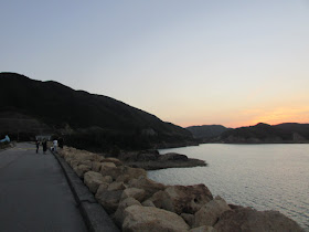 五點半到達東壩,的士站正大排長龍,沒有其他同行者,乘的士回西貢並不經濟,當然不作考慮。此時適逢日落時間,有些遊人舉起拍攝工具,攝下美麗的落日,坳仔亦順道遊覽東壩較低處的錨形石群與六角石柱群。天色轉暗,路上車來車往且無明顯人行路,入黑後行走還是具一定危險性,幸好過了西壩後,開始有明顯的人行路,七點十五分回到北潭涌。北潭涌復興橋畔的「發記士多」,將在翌周日(8日)結業,當然要稍作惠顧,可惜時候已晚,無麵食供應,最後就乘巴士回西貢市區,為坳仔的21歲合共八十餘次遠足劃上句號。