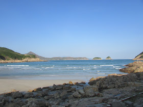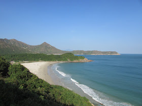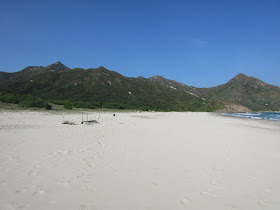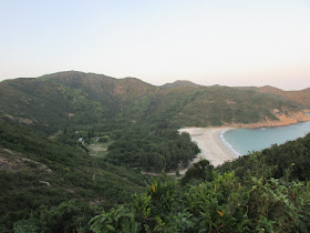 接回麥徑二段,赤徑的士多仍舊沒有開門。快步上大浪坳,不作停留,直降大浪村(大圍),然後繞入往大灣沙灘的水泥小徑,途經龍尾頭及大灣兩廢村,臨到沙灘時有一些沼澤,小心翼翼的踏上凸石面前行,以免濕腳,期間突然聽到自己的名字,抬頭一看,原來就是前年參加AYP露營時的其中一位組員。