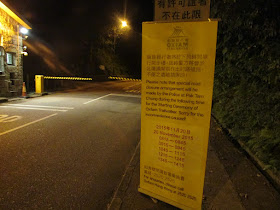 北潭涌閘口上的易拉架,提醒駕駛人士有兩大遠足比賽(包括毅行者),起步時閘口將會關閉: