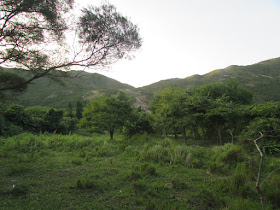 經廢田中的水泥徑往大灣,可見蚺蛇尖、米粉頂山脊: