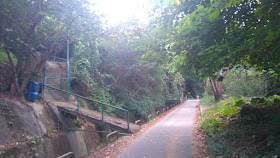 由荃灣站起步,沿荃景圍馬路直上,轉入往「潭頂新村」之水泥路,途中可見曹公潭與附近的瀑布,左邊亦有一些小徑,大致上抵下花山引水道的不同部分。去年相若時間,曾在此段第一個入口沿樓梯上引水道,還記得路上有很多鬼針草種子,為免再「中招」,是日當然不選此路口,而是再前走一會,在第二個入口才上山。第二個入口較為隱蔽,沿水泥徑一直前走,進了人家的花園也不知道,幸好沒遇上惡犬。途經一處半荒廢的寮屋區,就到下花山引水道。再前走近十分鐘,就是下花山村居民福利會與烈女宮。