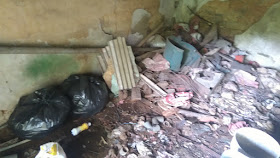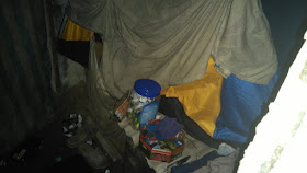 進入被帳篷掩蓋的房,可見小椅子、未開的電池、眼鏡等,相信近來有人到過: