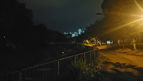 在軍車路十分爽快的衝下去,不消一會就到桔仔山坳,是龍山(370米)與九龍坑山(440米)之間的山坳,可沿馬路續下九龍坑村,或沿郊遊徑往流水響。往流水響途中經雲山下村遺址(「雲山下」的名字已在地圖上消失),不遠處正是流水響露營地點。