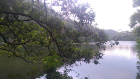 近半小時後,就到鶴藪水塘附近,然後接入衛奕信徑上石坳山(278米),上山樓梯是彎彎曲曲的,故開了不少捷徑。石坳山把流水響鶴藪兩谷分隔,兩地都是受歡迎的郊遊地點,而且都有各自的水塘,但流水響沒有公共交通工具,需走約十五分鐘往鶴藪乘車。在郊遊徑最高處附近有一隱蔽小徑入口,相信是上石坳山頂,但上頂小徑的灌木叢實在太密,最後還是放棄。在高地多走近半小時,接流水響郊遊徑,就到往九龍坑山的馬路。