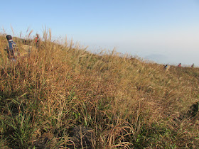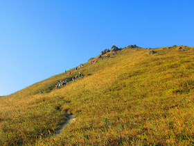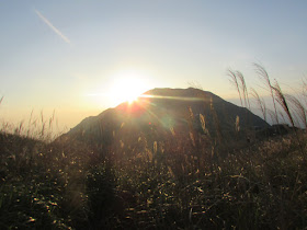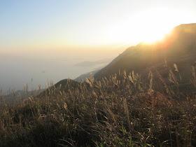 是日天色非常好,加上正值芒草季節,早茶後隨即上大東山,欣賞傳說中的芒草世界。為了避開上落山人潮,特意選擇新路,經石獅山沿陡斜的北脊直上大東山頂,順道遊覽隱藏的「天池」及觀看美麗的日落,最後就摸黑沿黃龍坑郊遊徑直降東涌作結。