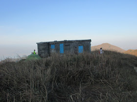 接回鳳凰徑,遊人當然不少,亦看到一些缺德的遊人,用手拿著芒草四圍走,相信是從山上拔去,再把它帶回家留念了。記著,留念是用眼睛和攝影器材把它帶回家,而不是用手。步在大東山的芒草世界中,那裡約有十八座「爛頭營」石屋,據說是昔日英軍的度假屋,可說是香城建築界的奇蹟,因為石屋在飽受風吹雨打的空曠山頭上已屹立近百年,至今仍相當整齊(其實都是有賴義工的功勞),每座也有各自的建築風格。或許是租賃程序較繁複的關係,雖然每次都有人租用石屋過夜,但遠遠不及冒著大風露營為多。