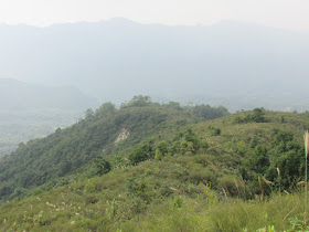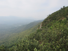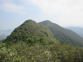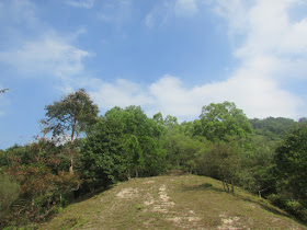 下車後快速的往烏蛟騰,經過小巴站及一些村屋後,在臨到郊遊徑的入口,右上有一明顯小路,看看GPS地圖,就是吊燈籠西南脊入口,上吧。沿途以密林地帶為主,路胚明顯,但有兩三處易感迷途的地方,循引路帶走問題不大,半小時後與西脊小徑(從亞媽笏附近而來)交匯。經芬箕托(369米)上吊燈籠的山徑,有如健康的牛市般,呈升多跌少勢頭,沒甚大起大落,那裡可一直回頭欣賞烏蛟騰、九擔租群村、苗田谷地及橫嶺群脈風光。